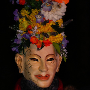 Die Bilder der Probe zum Winteraustreiben zeigen auch einige Nahaufnahmen der Masken, geschnitzt und koloriert von Sidi und Gina: Winteraustreiben Probe